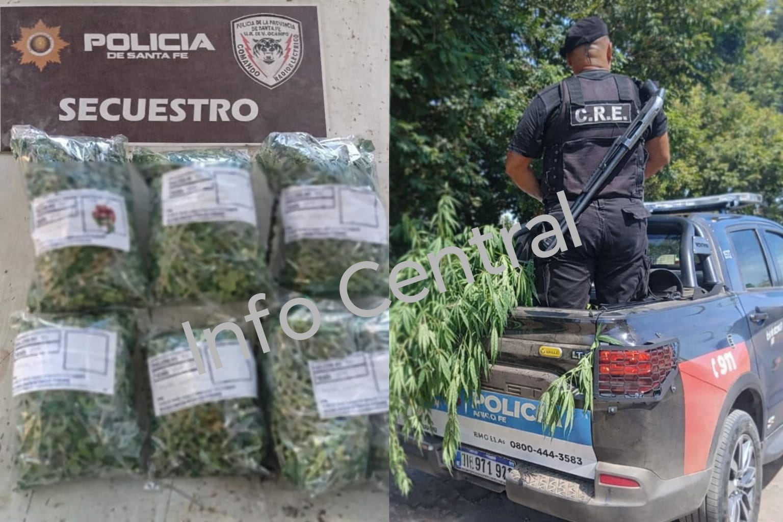 Durante la inspección, los uniformados hallaron nueve plantas de distintos tamaños y un envoltorio de nylon que contenía otros dos paquetes con sustancia vegetal compatible con marihuana.