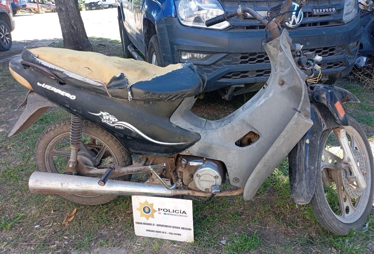 Al ser consultado sobre la procedencia del birrodado, el joven brindó versiones contradictorias y no presentó documentación alguna que acreditara su propiedad. Por tal motivo, se realizó el secuestro preventivo de la motocicleta marca Guerrero, modelo Trip, color negro, con cachas únicamente en su parte trasera, en regular estado de uso y conservación, y sin llave de arranque.