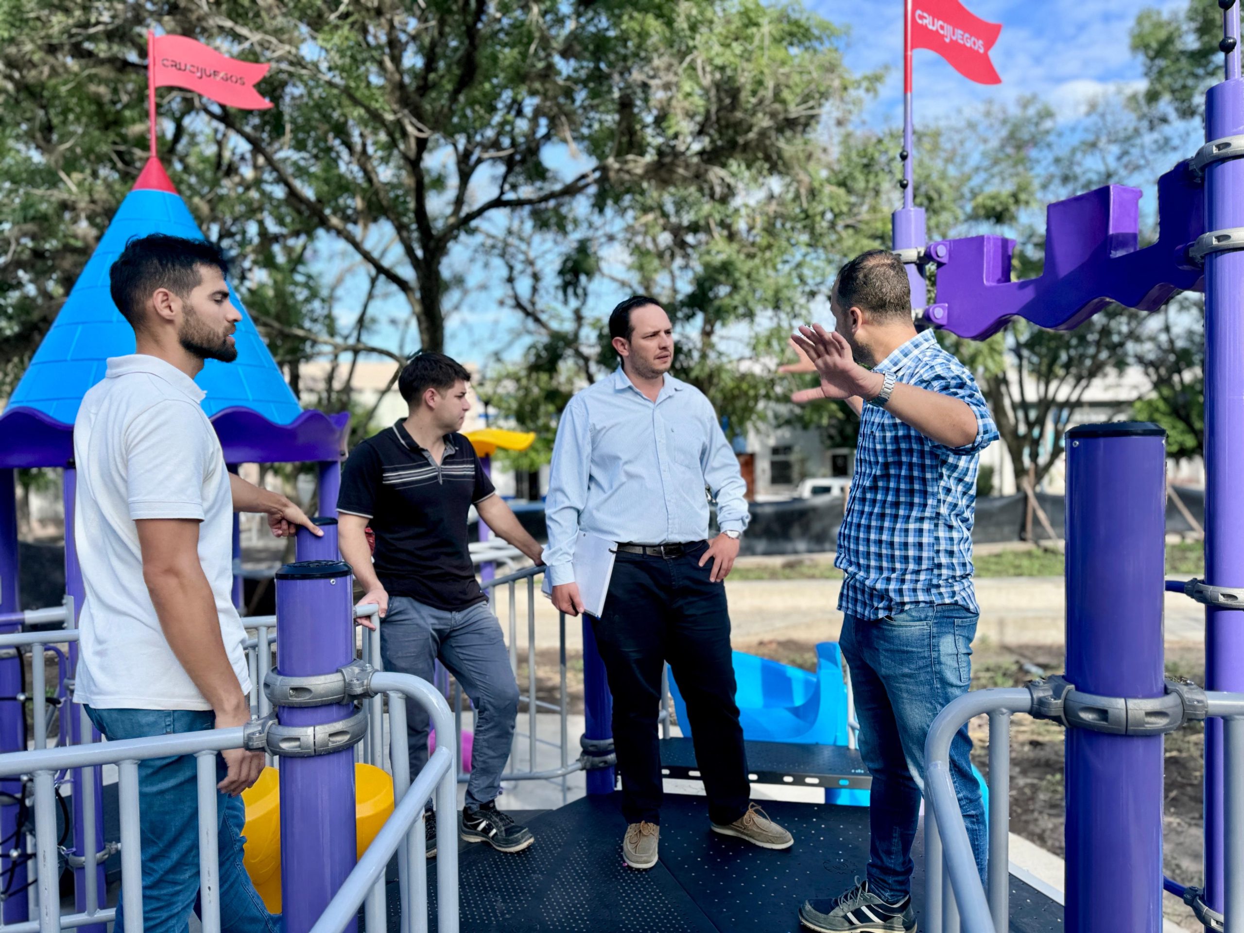 En el recorrido, Marega destacó la incorporación de juegos infantiles y los trabajos en infraestructura de iluminación y accesibilidad: “Junto al equipo de obra pública estamos muy contentos supervisando el avance de obra. Llevamos un avance de más del 60% y, si Dios quiere, para fin de año pretendemos inaugurar la remodelación completa de la plaza,” explicó el intendente. “Se ha culminado con la instalación de un juego de gran envergadura que estará en el extremo sur, y en las próximas semanas instalaremos los juegos complementarios.”