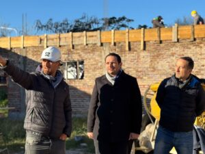 En estos momentos está finalizando la segunda etapa constructiva, que comprende la construcción de mamposterías, instalación de columnas de hormigón armado y colocación de vigas de encadenado superior; tarea que se ejecuta con fondos gestionados ante el Gobierno Provincial, en el marco del Programa “Brigadier”.