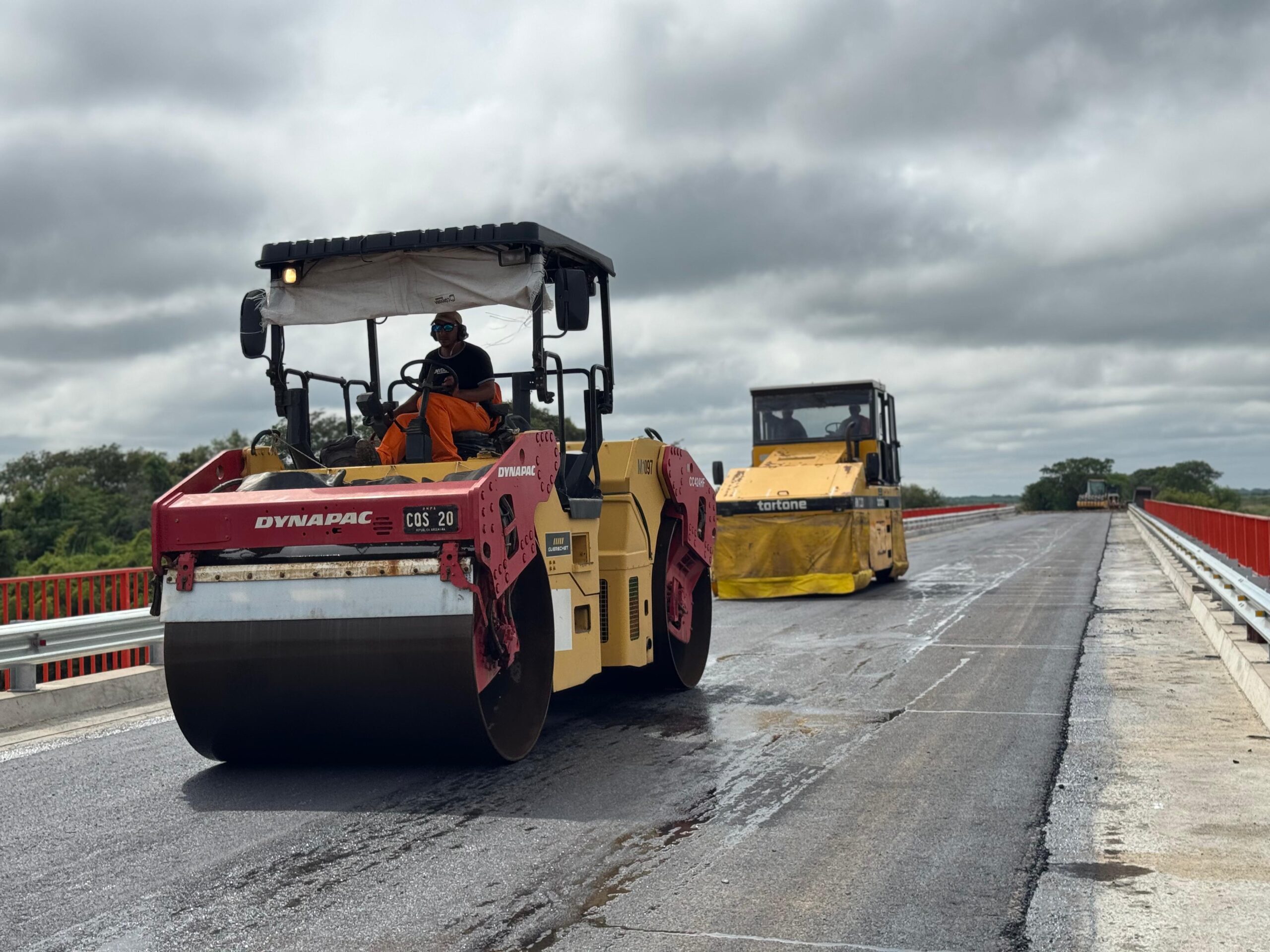 En esta instancia se están llevando adelante las tareas finales de obra, entre las que se destacan la ejecución de la carpeta asfáltica sobre el puente y sus accesos, un paso fundamental para la habilitación de la circulación vehicular.