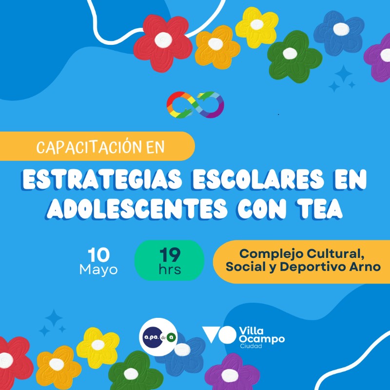 La Secretaría de Desarrollo Humano de la Municipalidad de Villa Ocampo junto a APAdeA –Asociación Argentina de Padres de Autistas, brindan a educadores y público general, una charla abierta y gratuita sobre “Estrategias escolares en adolescentes con TEA” (Trastorno del Espectro Autista).