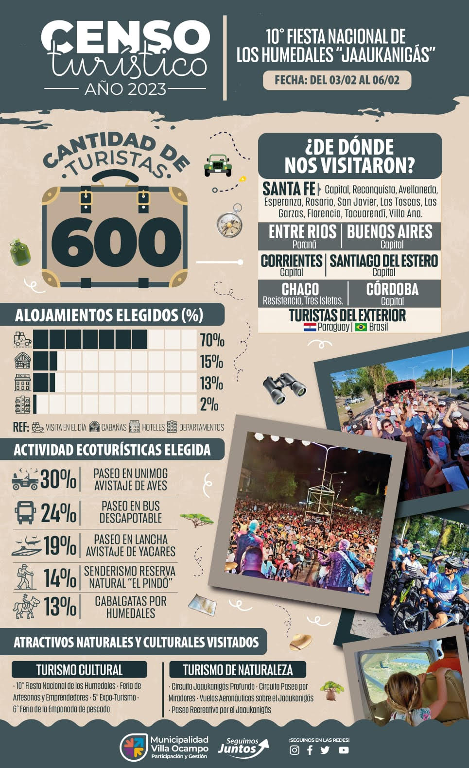 • Se registraron 600 turistas provenientes de distintas localidades de las provincias de Entre Ríos, Corrientes, Santiago del Estero, Córdoba, Santa Fe, Chaco y Ciudad Autónoma de Buenos Aires; y del extranjero: Paraguay y Brasil.