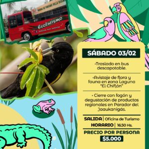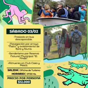 En el marco de la 11° Fiesta Nacional de los Humedales “Jaaukanigás”, el Área de Turismo de la Municipalidad de Villa Ocampo informa el programa de recorridos ecoturísticos para realizar desde el viernes 2 al domingo 4 de febrero.