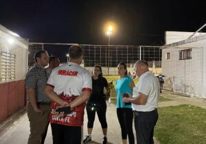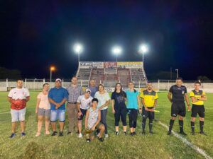 El intendente Cristian Marega y las responsables del Área de Deportes, Nair Debárbora y Milena Copetti, acompañaron el inicio de la Copa “Lelo” Castillo en el estadio Juan David Getar, junto a familiares y dirigentes del Club Huracán.