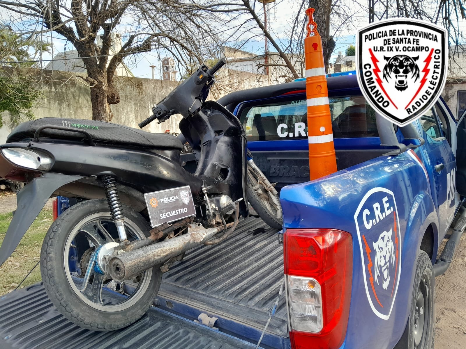 Siendo las 15.30 horas, personal de Comando Radioeléctrico Zona Norte Tomo conocimiento que dos masculinos en una motocicleta habían pasado por la mitad de la plaza realizando maniobras peligrosas por el interior de la misma, dejándola estacionada en la esquina de Belgrano y Beltrán, donde proceden a la correcta identificación del moto vehículo, siendo una motocicleta marca Zanella 110 cc, color Negro con plásticos colocados, sin dominio visible, observando que los logaritmos del chasis estarían posiblemente adulterados y numero del motor no presenta ya que aparentemente estarían limados.