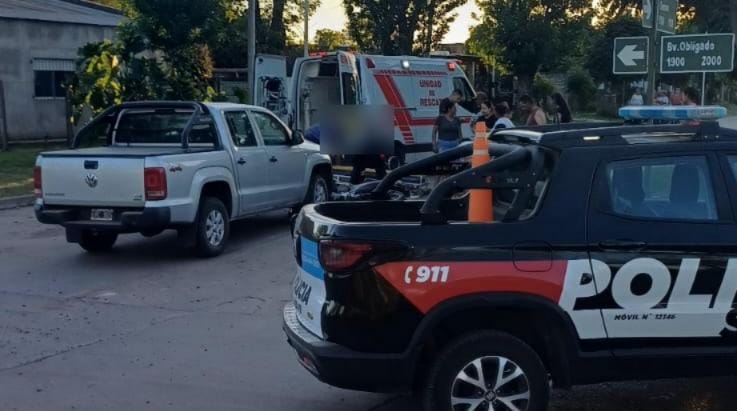 El siniestro involucró a una camioneta Volkswagen Amarok, color gris, conducida por un hombre mayor de edad, y a una motocicleta Corven Energy 110 cc, color negra, guiada por un vecino de la localidad, también mayor de edad, quien iba acompañado por un menor de 12 años.