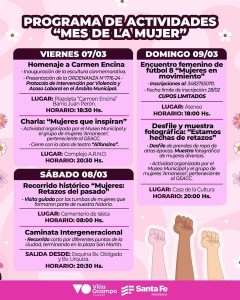 Villa Ocampo:  Programa de actividades para el mes de la mujer, impulsado desde la Municipalidad.
