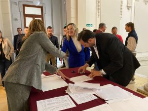 En total se firmaron acuerdos con 19 localidades, entre ellas Villa Ocampo, donde se llevará a cabo la construcción de un aula en dicha escuela de nuestra ciudad.