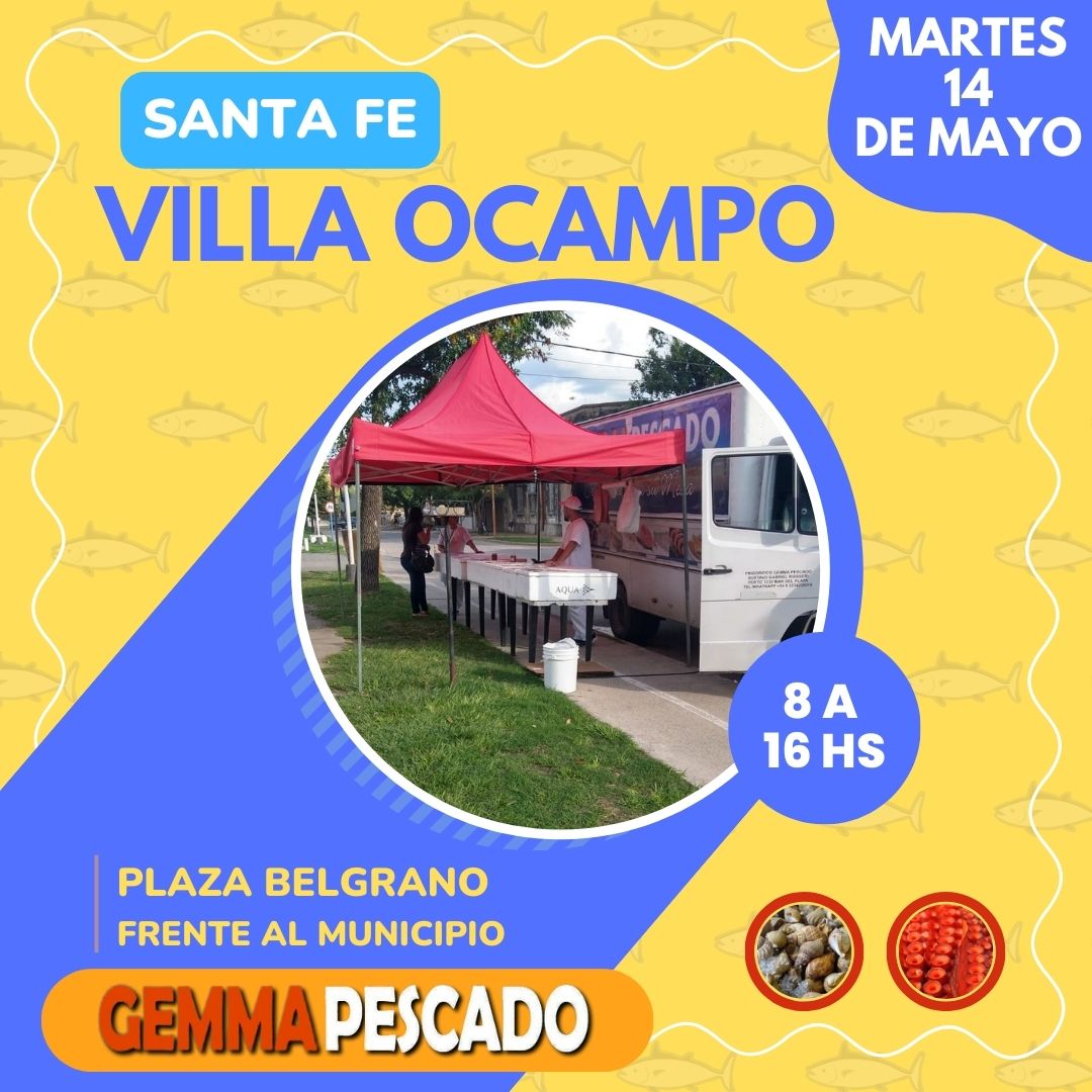 La Oficina de ASSAL de la Municipalidad de Villa Ocampo informa que mañana “MARTES 14 de mayo, de 8 a 16 hs.” , se llevará a cabo una Feria de Pescado de Mar en Plaza Belgrano, frente al Palacio Municipal por la empresa Gemma Pescado, de Mar de Plata, que estará vendiendo su mercadería al costo.