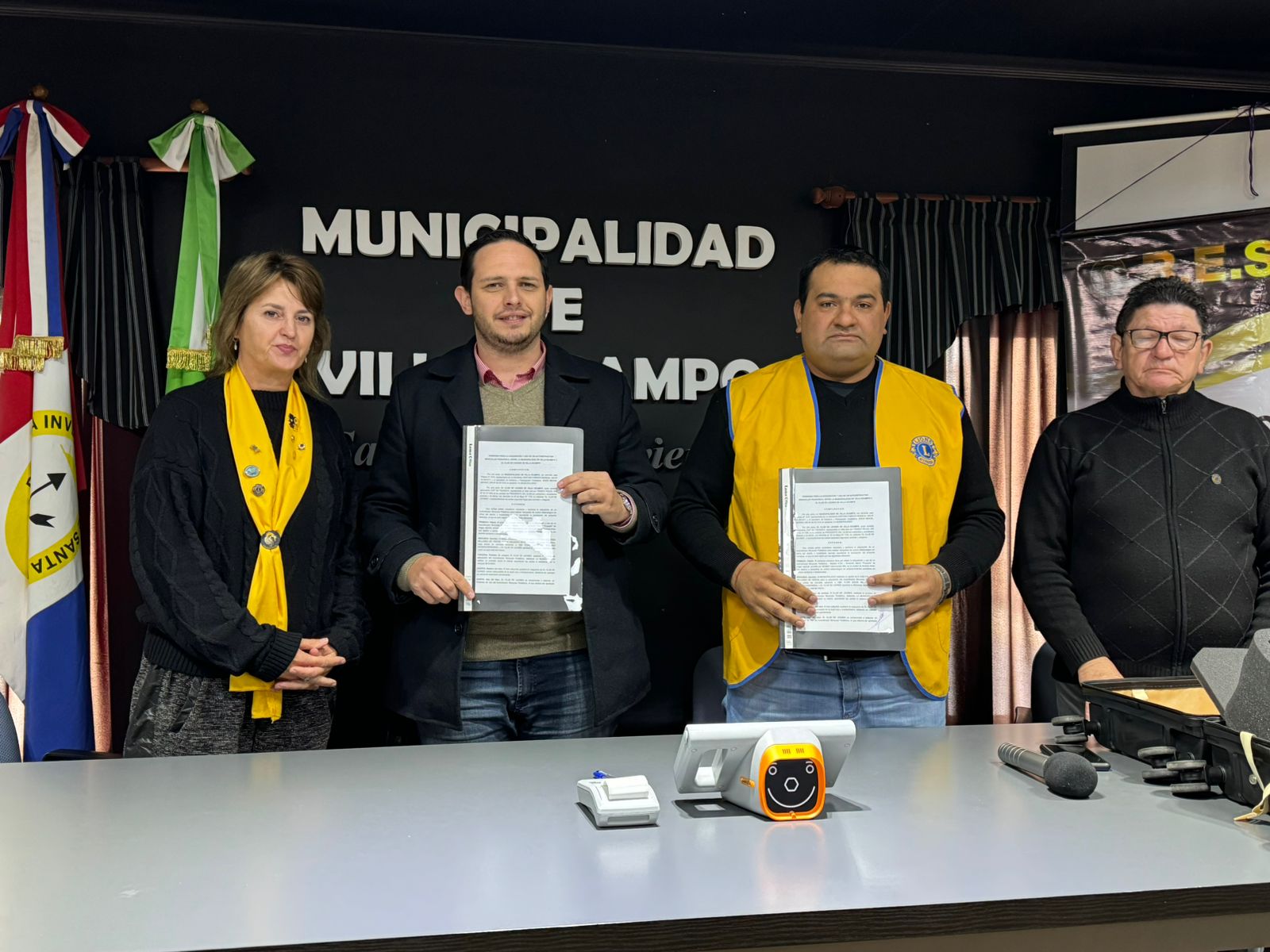 En la mañana de hoy, viernes 28 de junio, se llevó a cabo en el salón “30 de Noviembre” del Palacio Municipal la firma del convenio para la adquisición y uso de un Autorefractor Binocular Pediátrico, entre la Municipalidad de Villa Ocampo y el Club de Leones de Villa Ocampo.