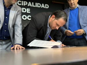 El intendente “Cristian Marega”, junto a los ministros provinciales de Gobierno e Innovación Pública, “Fabián Bastía”; de Trabajo, Empleo y Seguridad Social, “Roald “Coco” Báscolo”; el secretario de Gestión de Registros Provinciales de la Provincia de Santa Fe, “Matías Figueroa Escauriza”; y el senador provincial, “Orfilio “Chacho” Marcón”; encabezaron en el salón “30 de Noviembre” del Palacio Municipal, la firma de varios convenios entre el Gobierno Provincial y las localidades de Villa Ocampo, El Sombrerito, Villa Ana y Tacuarendí.