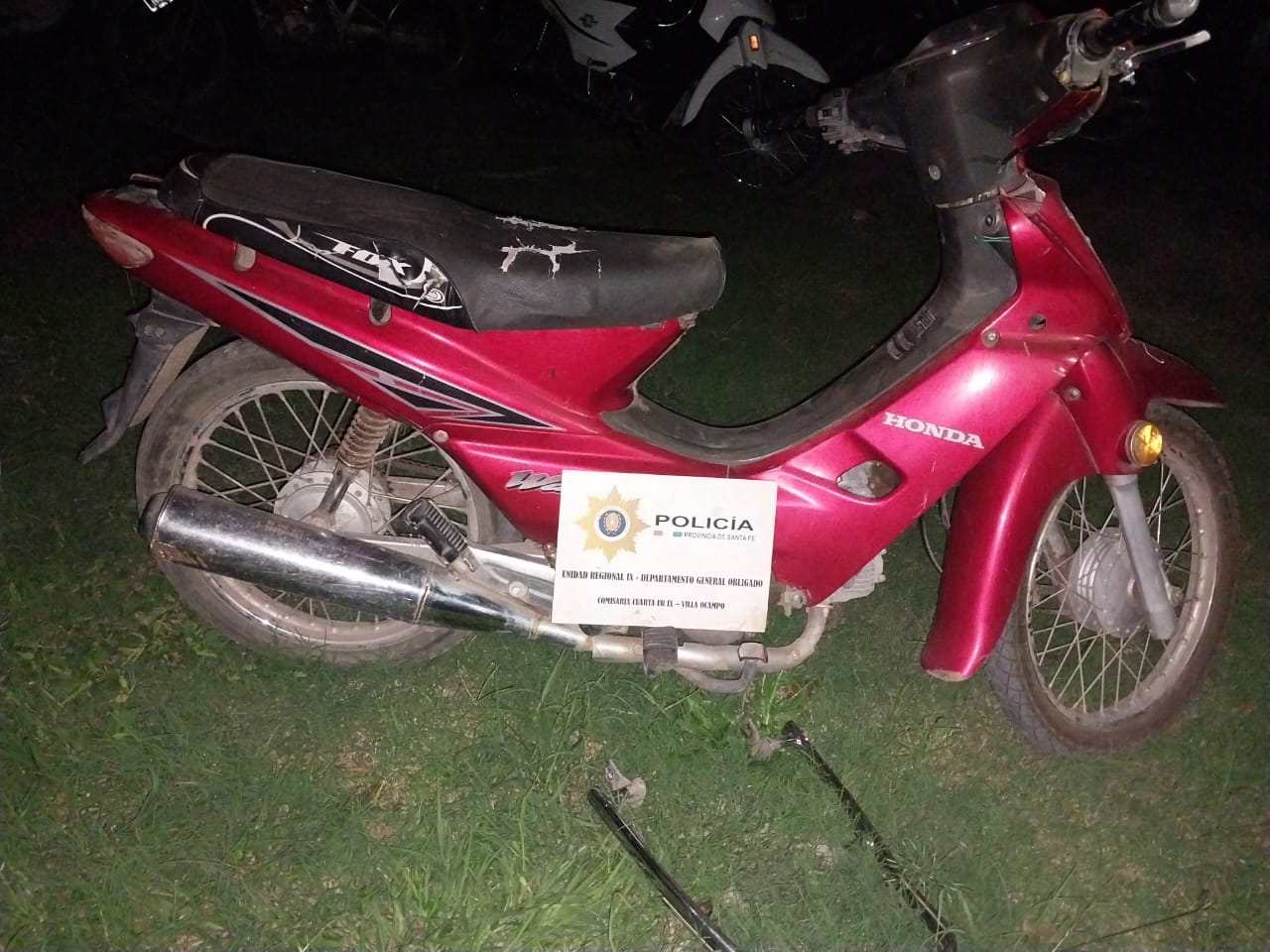 Personal de la Comisaria IV UR IX, recupero MOTOCICLETA, marca HONDA, modelo NF 100 WAVE, color ROJA, que fue sustraída desde el frente del Caps de Barrio Sur, la misma fue hallada en la localidad de San Antonio de Obligado, en poder de la ciudadana de 30 años de edad, domiciliada en esa localidad, a quien se le atribuyo el delito en estado de libertad, seguidamente procedieron al secuestro del elemento de interés. Damnificada resulto ciudadana de 29 años de edad.
