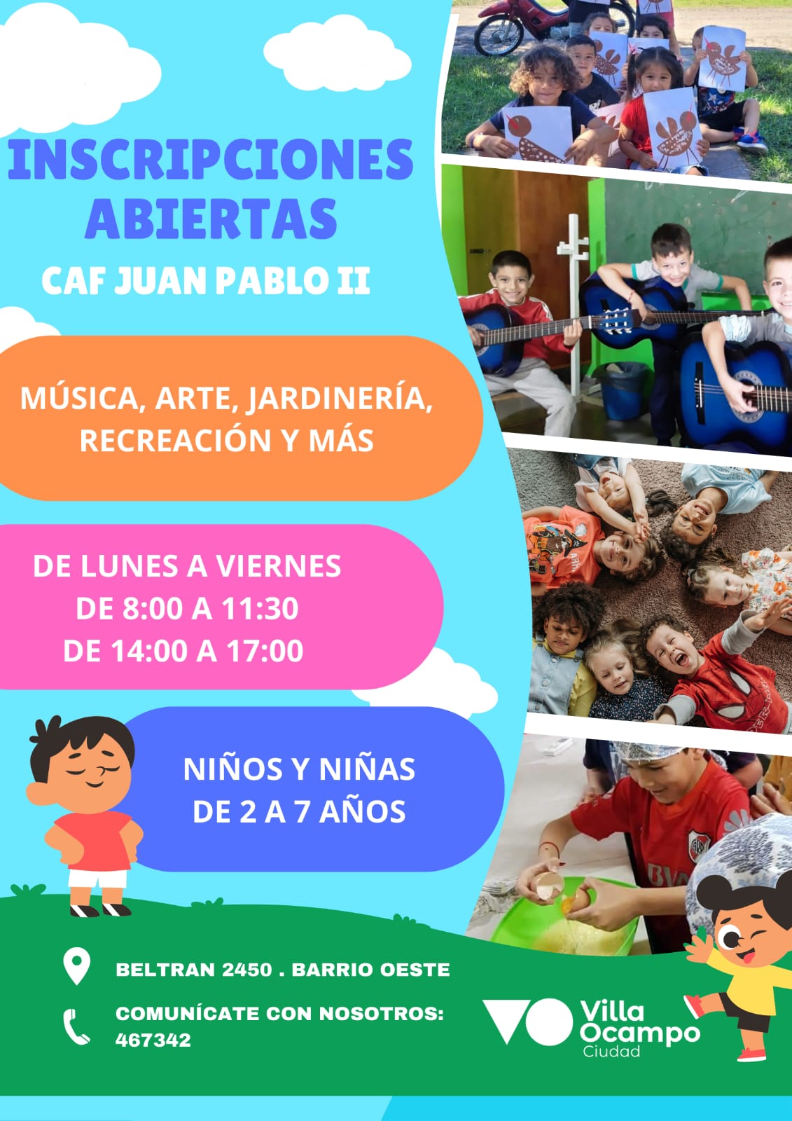 El Centro de Integración Familiar (C.A.F.) Juan Pablo II informa a la comunidad que se encuentran abiertas las inscripciones para niños y niñas de 2 a 7 años, donde disfrutarán y aprenderán de actividades recreativas, artísticas, de jardinería y mucho más.