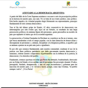 Villa Ocampo: Los Concejales Volkart y Zoloaga: ATENTADO A LA DEMOCRACIA ARGENTINA.