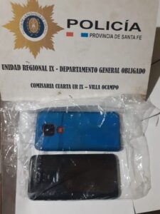 Los uniformados lograron la aprehensión de R. G . R de 22 años de edad, domiciliado en calle Maria Adela s/n Barrio Los Amores y S.L F. de 33 años de edad , casado, agricultor , domicilio calle Juan de Garay N 2185 de Villa Ocampo, el oficial policial a cargo del procedimiento ordenó el secuestro de una camioneta 4X4 marca TOYOTA modelo Hilux SRV color Gris DOMINIO AA371IJ y del interior de la misma un celular marca MOTOROLA, otro celular marca XIAMI REDMI color azul pantalla táctil el cual se encontraba en Posesión de uno de los malechores.