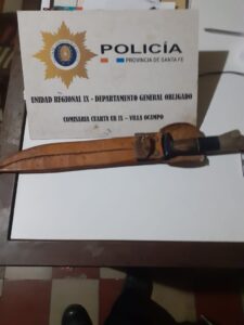 Se hace constar que también se secuestró del domicilio de Cubecino, un cuchillo tipo machete, cabo de guampa , 29cm de hoja, el cual la victima portara al momento de los hechos.