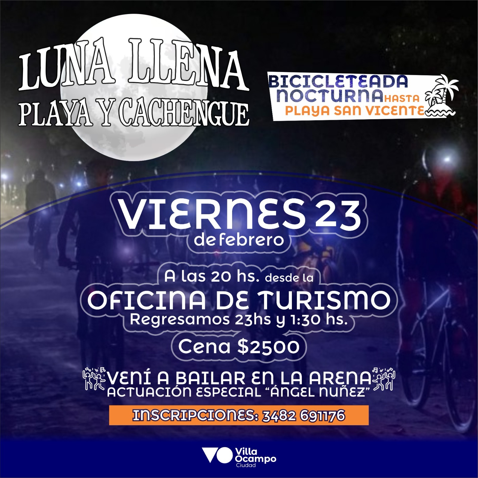 Las áreas de Turismo y Deportes de la Municipalidad de Villa Ocampo organizan la segunda bicicleteada nocturna a la Playa San Vicente con la actuación especial de Ángel Núñez.