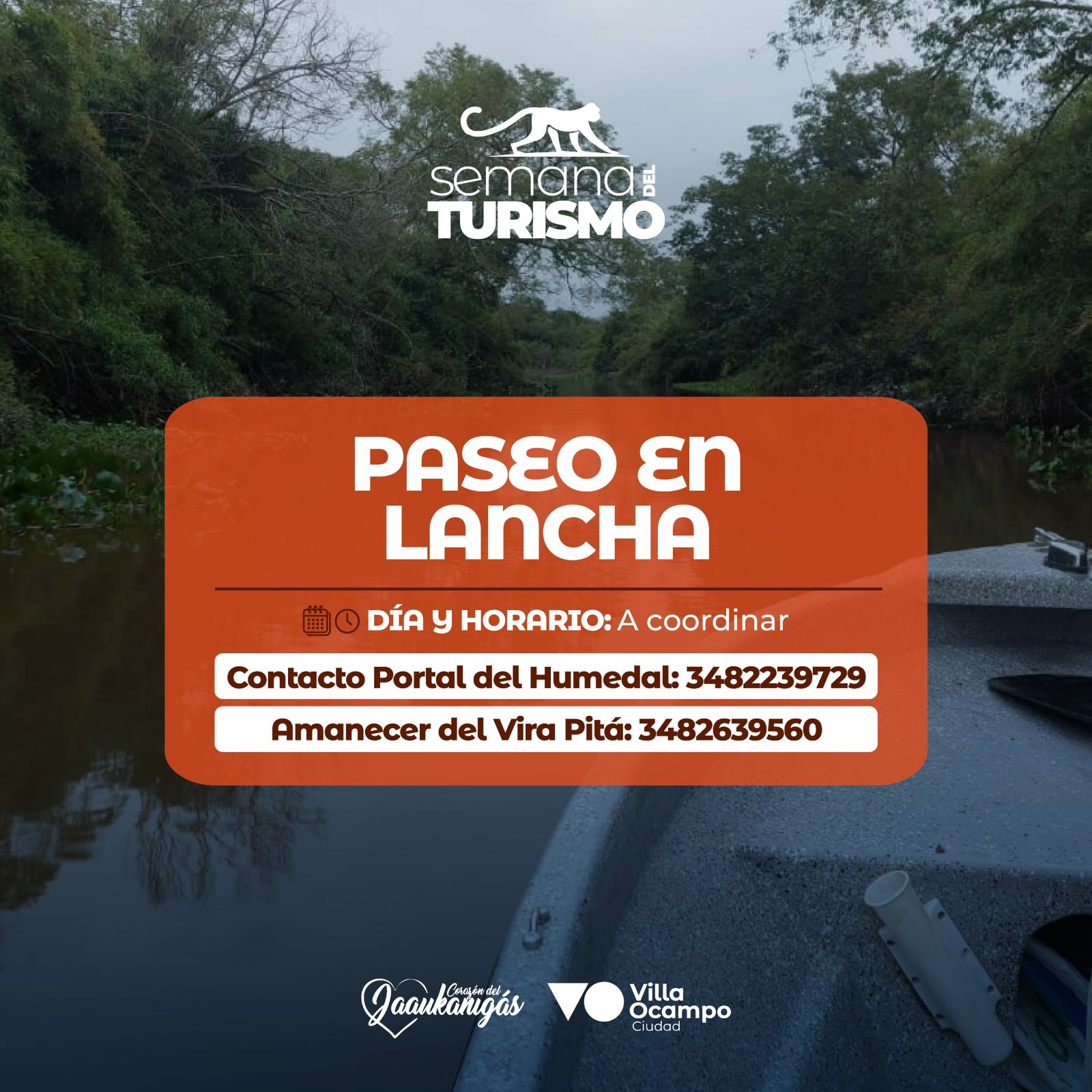 A lo largo de la semana, también se podrá disfrutar de paseos en lancha por los humedales. El día y horario serán a coordinar con los servicios de Portal del Humedal (3482239729) y Amanecer del Virá Pitá (3482639560).