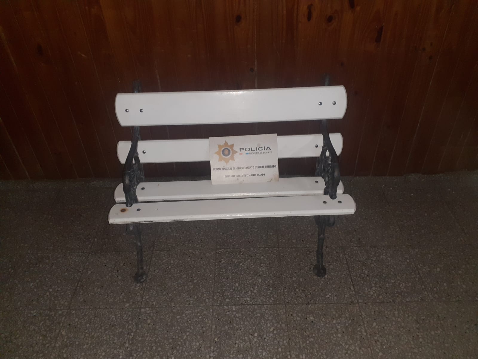 Fecha 03-04-2024 – Siendo las 20:00 horas, personal de la Comisaria IV UR IX, recupero un banco, tamaño pequeño de plaza colonial Rustico, de hierro, color negro y madera color blanco, que fue sustraído por el ciudadano de 29 años de edad, desde el domicilio de una femenina mayor de edad.