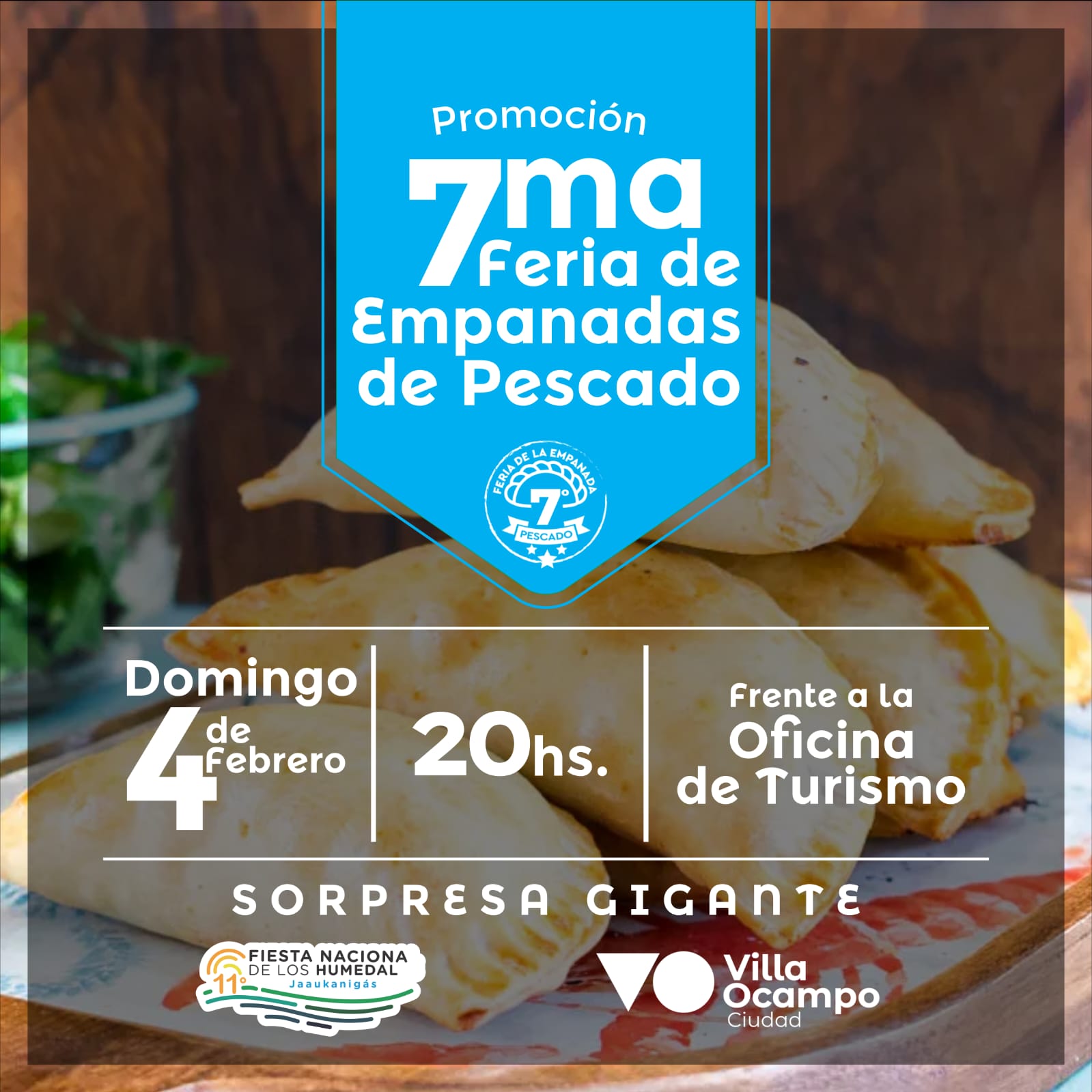 La Municipalidad de Villa Ocampo, junto a los emprendedores gastronómicos que tradicionalmente llevan adelante la Feria de la Empanada de Pescado, invitan a toda la comunidad a participar de la Promoción de la 7°Feria, el domingo 4 de febrero, a las 20hs., en el acceso de la ciudad, frente a la Oficina de Turismo.