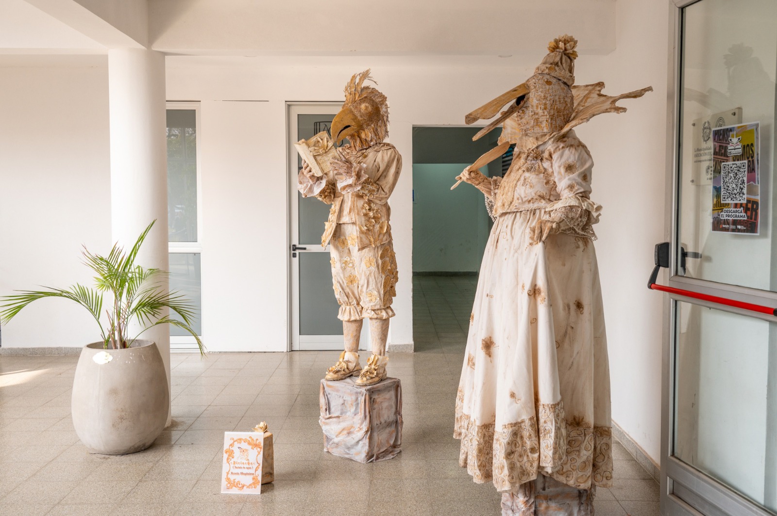 Luego del corte de cinta, el Coro Polifónico Municipal “Cristian Del Fabro de Vicentin” recibió en el hall del Complejo Educativo “General Manuel Obligado” a los presentes quienes también pudieron disfrutar de la muestra artística “Jaaukanigás Barroco”, de la Compañía de Estatuas Vivientes del ISFD N°5074 de la ciudad de Reconquista.