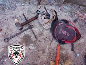 Se incautó (01) mochila, (01) martillo, (01) llave inglesa, (01) llave doble corona de hierro, (01) pinza y retazos de hierros y metales (roscas, tuercas, abrazaderas de bronce) y (01) remera. Se dio conocimiento al Fiscal en Turno.