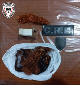 Personal de Comando Radioeléctrico Zona Norte, procedieron a identificar dos masculinos quienes resultaron ser dos menores de 14 años de edad, al requisar una mochila de tela, color gris, la cual llevaba uno de los menores, hallaron en su interior un bobinado de rollo de alambre de cobre y varios retazos cortados del mismo material, aduciendo haberlos encontrado en un basurero de la escuela técnica n° 619 PBRO Luiz Sponton.