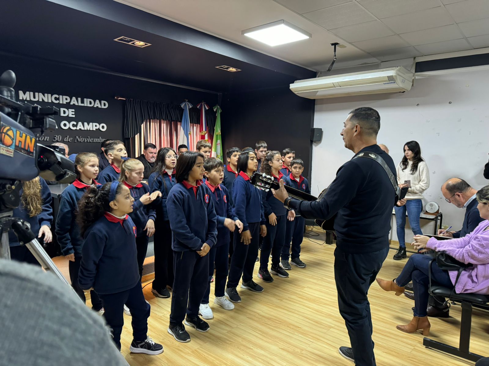 Durante el acto, se pudo disfrutar la interpretación de canciones del coro de niños “Clave De Sol” de la Escuela Particular N°1109 “Santísima Virgen Niña”, a cargo del profesor Sergio Cantero.