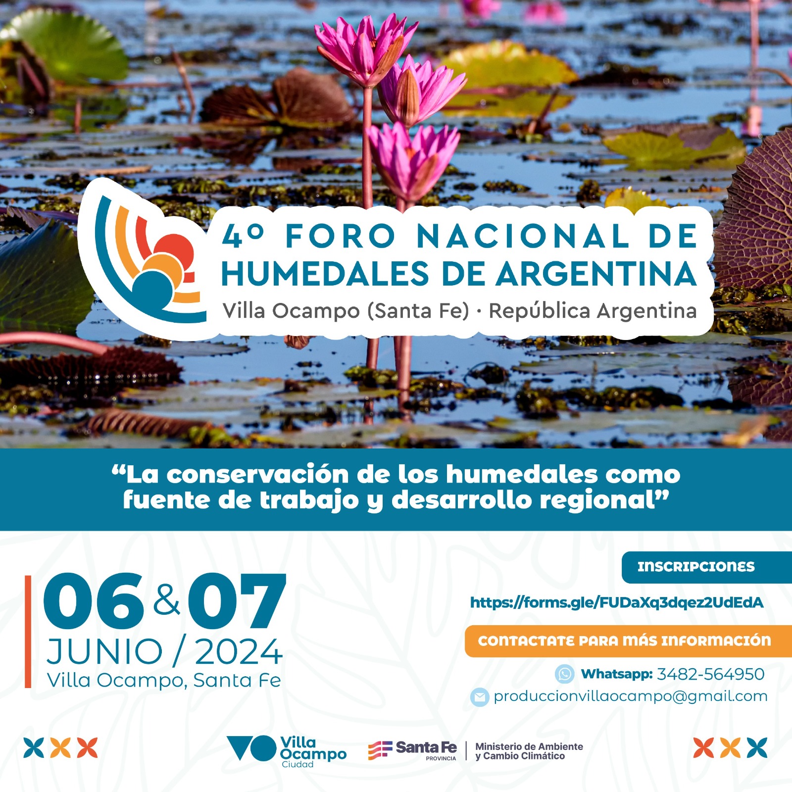 Los días “jueves 6 y viernes 7 de junio”, Villa Ocampo será sede del 4º Foro Nacional de los Humedales con la presencia de destacados expositores y representantes gubernamentales, universidades e instituciones y organizaciones públicas y privadas vinculadas con la cuestión ambiental de todo el país.