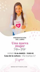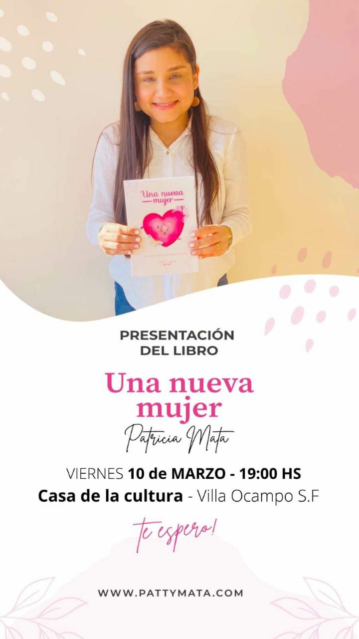 La Secretaría de Cultura y Comunicación de la Municipalidad de Villa Ocampo y el Grupo VOCES (Villa Ocampo Escribe), en adhesión al Día Internacional de la Mujer, invitan a participar de un nuevo Encuentro de Escritores, hoy viernes 10 de marzo, a partir de las 19:00 Hs. en el patio-jardín de la Casa de la Cultura “Raúl Scalabrini Ortiz”; donde además, la escritora Patty Mata presentará su libro “Una Nueva Mujer”.