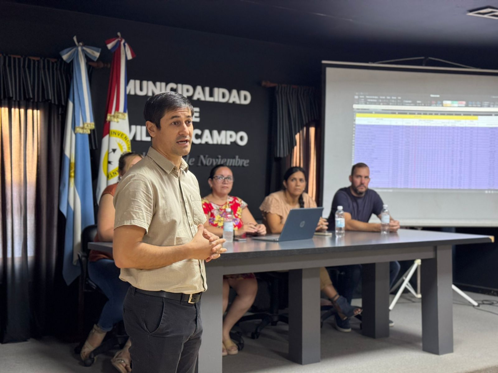 La reunión contó con la presencia del secretario de Gobierno, Miguel Merino; representantes del área de Educación, Patricia Martynaitis; la representante del Ejecutivo, Belén Ayala; y miembros de la comisión evaluadora, los ediles María Belén Zoloaga y Mario Araujo.