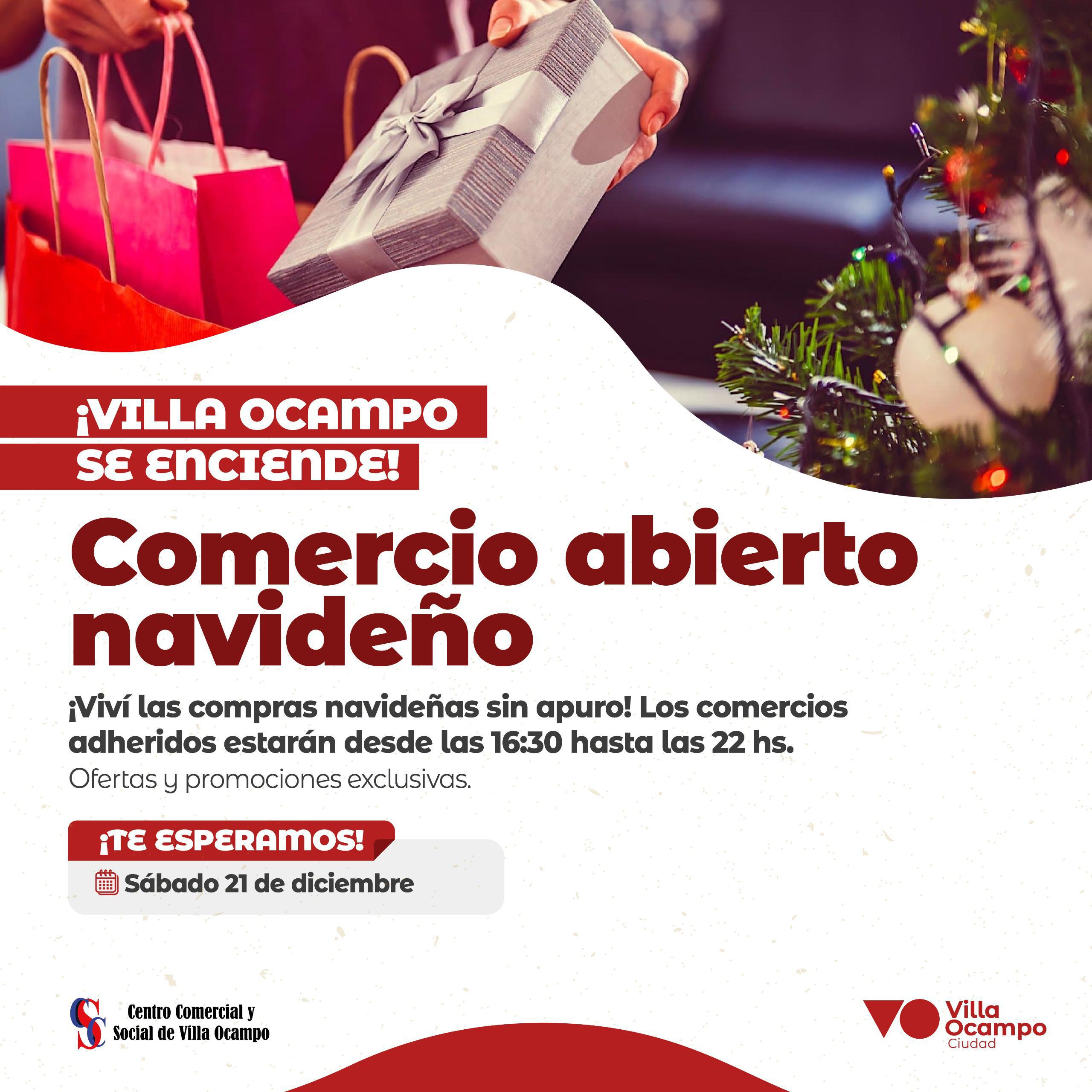 La ciudad de Villa Ocampo se prepara para vivir la magia de la Navidad con la iniciativa “Comercio Abierto Navideño”, organizada por el municipio junto al Centro Comercial y Social Villa Ocampo. El evento se llevará a cabo hoy sábado 21 de diciembre, desde las 16:30 hasta las 22:00 horas.
