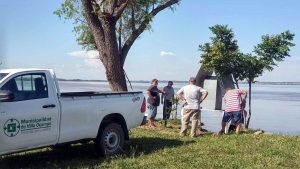 La Secretaría de Servicios Públicos de la Municipalidad de Villa Ocampo informa que debido al sostenido proceso de desbarrancamiento que se está registrando en el predio de Puerto Ocampo, situación que no registra antecedentes y que está modificando notoriamente la geografía del lugar, se realizó un operativo de traslado del oratorio de la Virgen “Stella Maris” para ponerla a resguardo en un sitio más alejado de la costa.