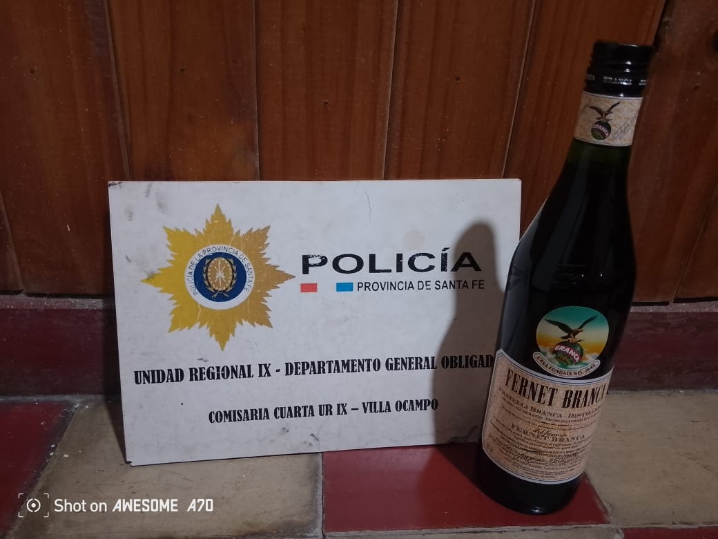 En cercanías fue aprehendido, identificado como Un vecino de ese medio, incautándose en su poder (01) botella de FERNET BRANCA de 750 ml, trasladado por delito caratulado a prima facie HURTO.