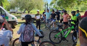 Desde allí, en bicicletas recorrieron todo el Camino Ecológico del Jaaukanigás, con paradas estratégicas en varios atractivos naturales característicos del lugar; incluyendo una visita a la Reserva Natural Municipal “El Pindó”, en su nueva ubicación, donde se les brindó un paseo guiado con el avistaje de la flora y fauna nativa del Sitio Ramsar “Jaaukanigás”.