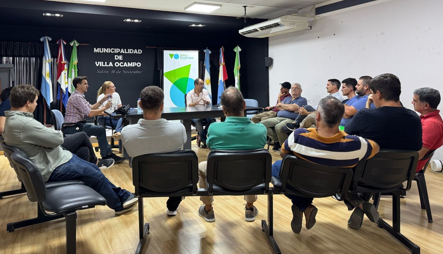 El pasado martes 18 de febrero se concretó en el Salón “30 de Noviembre” del Palacio Municipal un encuentro con Damián Scarabotti, director de Agricultura y Desarrollo Forestal del Ministerio de Desarrollo Productivo de la Provincia; quien, junto a la secretaria de Producción, Turismo y Ambiente de la Municipalidad de Villa Ocampo, Milvana Yaccuzzi, convocaron a referentes de las instituciones relacionadas con el sector productivo de la zona (INTA, COET, APPEI, CREA, EFA, ADVO) para realizar un diagnóstico sobre el uso de sistemas de riego en cultivos extensivos.