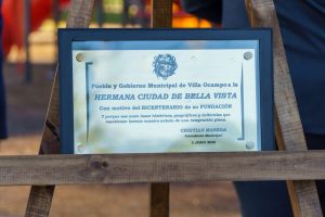 Durante el acto central, Marega entregó a la intendenta de Bella Vista, Noelia Bazzi, una placa en nombre del pueblo y del gobierno ocampense, destacando los lazos históricos, geográficos y culturales que unen a ambas comunidades. En ese marco, reafirmó el compromiso de avanzar hacia una integración regional plena.