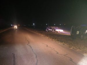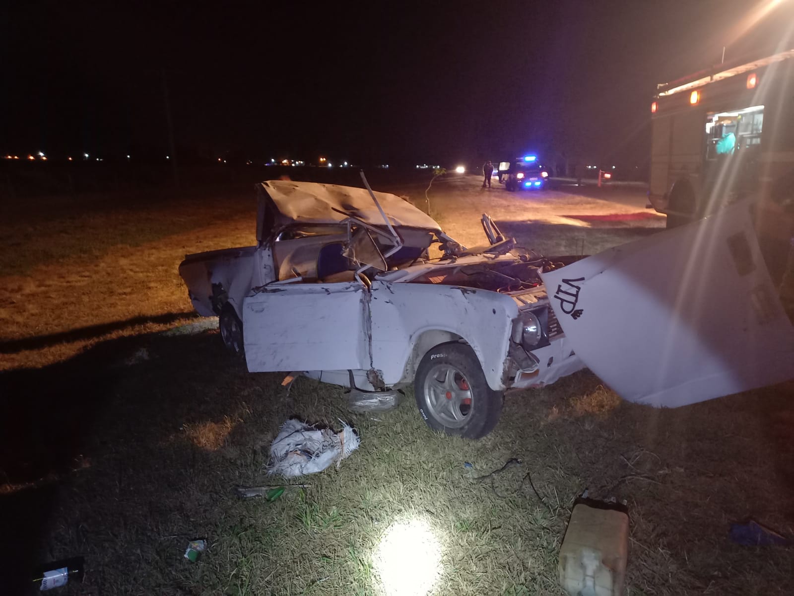 Llegando a altura zona de Barrio los amores, el personal interviniente, pierde de vista el vehículo, notando gran cantidad de polvareda, observándose metros más adelante un accidente de tránsito donde se ve involucrado la CAMIONETA FIAT MULTICARGA color BLANCA, y que aparentemente el conductor, perdió el control del vehículo, dando varios vuelcos, quedando totalmente destruida, a un costado de la banquina de RUTA PROVICNIAL Nº 32 y con sus ocupantes tirados en el suelo, con varias lesiones, notando además a su alrededor gran cantidad de bolsas de tipo arpilleras conteniendo botellas de vidrio, los cuales se presume era carga de la camioneta en cuestión.